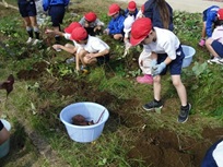 さつまいもを掘りました! 2025年11月13日 最終更新日時 : 2025年11月13日 kumagaya_contribute 2年生は学級園で育てたさつまいもを掘りました! 奥深くまで頑張って土を掘り進めると、さつまいもをたくさん見つけることができました。 ぜひお家で食べてみてください!