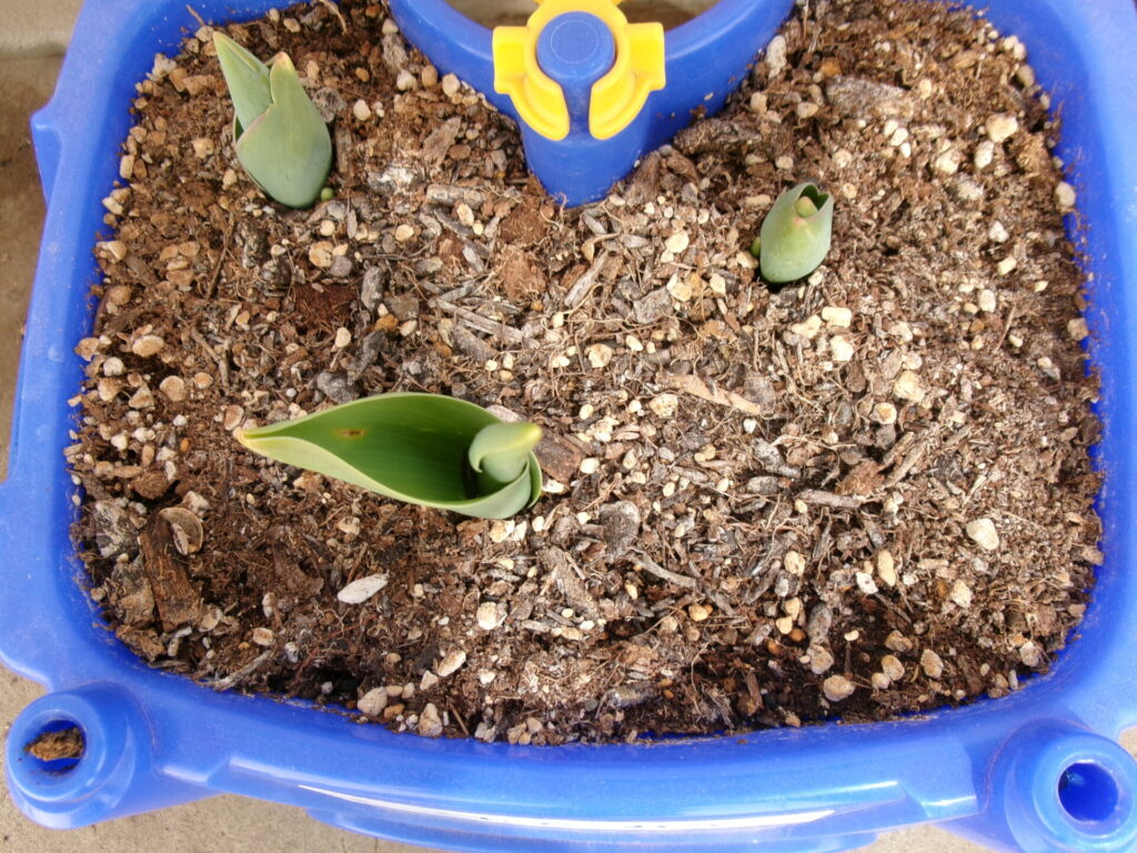 チューリップの芽が大きくなりました