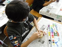 パレットやコップの色と、紙に塗ったときの色の変化も楽しんでいました!