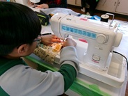 5年生は、家庭科「ミシンでソーイングを楽しもう」の学習で、ランチョンマットづくりをしています。