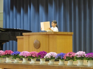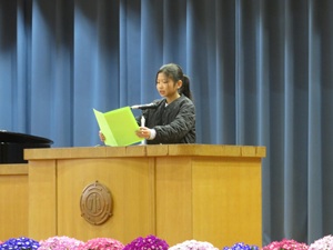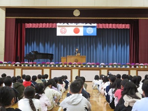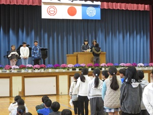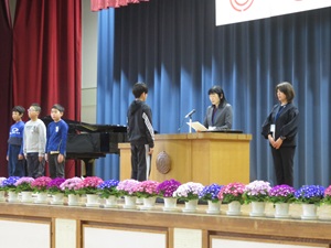 各学年の学級代表児童が修了証を受け取る際には、他の児童も動きに合わせて姿勢を正し、心のこもった礼を行うことができました。どの学年も1年間の成長を感じさせる立派な態度でした。