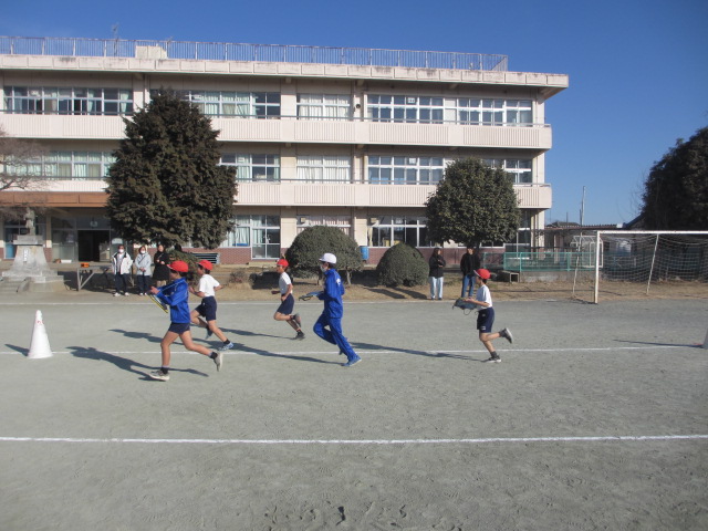 澄みきった青空の下、今年の持久走記録会が行われました。風もほとんどなく、まさに持久走にはうってつけの絶好のコンディション。参加した子どもたちは、この恵まれた天気の中で、自分の力を思いきり発揮していました。