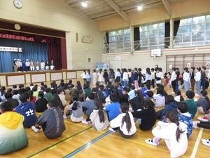 調理員さんの自己紹介では大きな拍手が起こるなど、児童は感謝の気持ちをもって参加していました。
