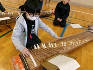 箏について学んだ後、実際に「さくらさくら」の演奏をしました。