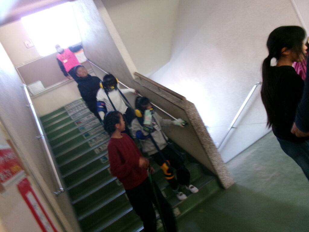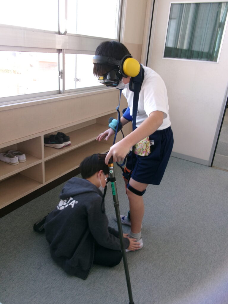2月12日(木)2校時から4校時にかけて「心のバリアフリー教室」を実施しました。内容は車椅子体験と高齢者体験です。二人一組になり、車椅子に乗ったり介助の仕方を学びました。また、目や手足に装具をつけて、高齢者になると身体がどのように変化していくのかを体験しました。車いすを押す様子は、初めての人も多く講師の方の話を聞きながらゆっくり車いすを押していました。講師の皆様、ありがとうございました。