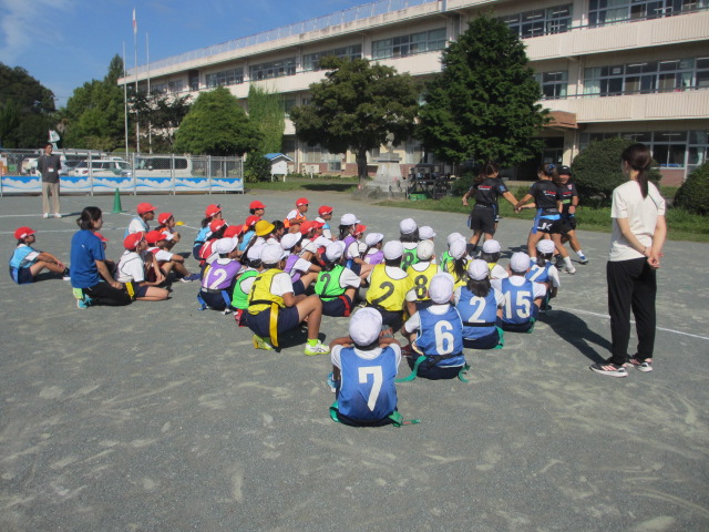 5年生タグラグビー教室開催! 2025年9月25日 最終更新日時 : 2025年9月25日 kumagaya_contribute ARUKAS KUMAGAYA の皆さんを招いて、5年生タグラグビー教室を行いました。 秋晴れのなか、校庭を楽しそうに走り回りました!